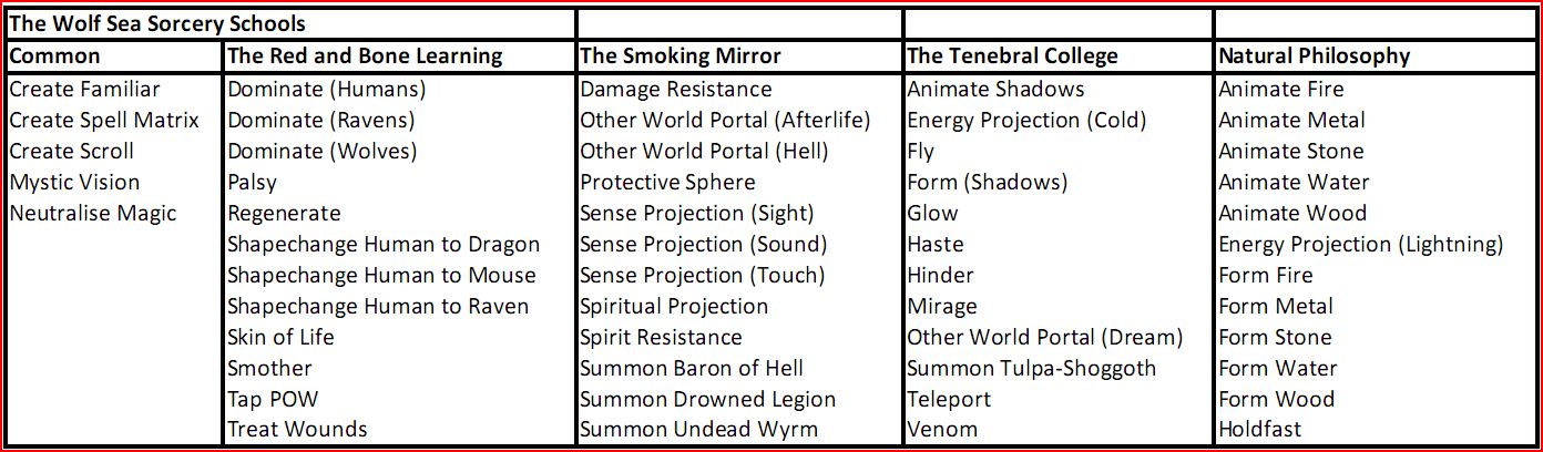 Alderspring is cattle country. The sacred bulls slaughtered in temples across the Wolf Sea are calved in the great herds of red and silver-coated cattle in the uplands. Fuligin-robed Deadwalkers of the Dismal Land, wolf-robed Krovi tribunes and the sorcerer-overseers of the Low Wyvs can all be found lodged in Deepwater, despite direct orders from the New King forbidding Baron Alderspring to do commerce with them. The baron sells the cattle for cash in hand, and uses the money to pay mercenaries to keep the New King's men out of his business. He sells sacred cattle on the sly to the Old King to placate his undead warriors, though it's an open secret and only a matter of time before he's caught. He is plagued by cattle-rustlers and an unusually large number of wolves, both of which he blames on the baroness of Redcrossing. Rumours abound that the Low Wyvs are building a gate in the hills to directly transport the bulls home without the need of ships, though where they would get a sufficiently large supply of human bone to do so is anyone's guess.