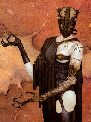 A couple of players in the Dawnlands game have remarked that there's a cyberpunk or transhumanist feel to it because of the relentless modification of the PCs' bodies. Two died and came back as undead last session, one with silver wiring for the nerves that were smashed in by a stone altar hurled by a golden golem, and the other with mercury blood that replaced the blood he'd lost when the altar shattered and lacerated him. I don't know why I like body modification as a theme in my rpgs (I have no piercings or tattoos in real life), but here are some of the kinds of modifications PCs can have: