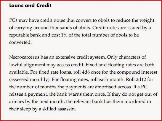 My overall goals were to simplify these classes enough so that each fits on one page, to give them clear schticks, and to emphasise their abilities. I think most of these write-ups are straightforward, but just in case anyone isn't familiar with the Necrocarcerus house rules, the following may be useful to know.